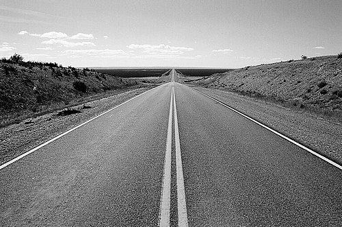 straight through at all junctions. As we speed along on the empty roads I
