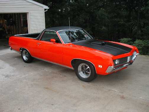 "Hi Mike, I am at it again - attached pictures of my latest project - this is going to be my daily driver(only in good weather though). It is a 1971 ranchero 500, 351 cleveland 4 barrel with ram air, Steering brakes and air with a c-6 trany. Ribbon Tach.