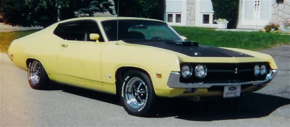 "Hi Mike it's Robert J Cuillerier from up north again (lol), Winter is just a few months away, but the Torino passion is still going strong!!! Here are some pictures of my buddy's (Andre Grenier) 1970 Torino "J" code Cobra. He is the original owner of this "legendary street bruiser". Power comes from a 429 SCJ backed up by a top loader 4 spd and 3.91 track lok rearend. Other options are factory tach, bucket seats, rear window louvers and magnum 500's. It just turned 20,000 miles and the only modifications are headers and 1971 style cobra on the grill and tail panel. He also has a glove box full of 13 second passes dating from 1970. Back in the early 70's he tried on slicks and a 457 Detroit locker, hiting the traps in the 12's. PS. A sign of it's race back ground is the tow bar under the front bumper!! Cool car!!! Keep up the great work. Always the best Torino site."