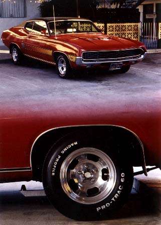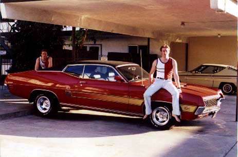 I received the following from Barry Madden of Sacramento, California. Barry writes "Mike, Great Torino site! I have been checking it off and on for the past couple of years, while dreaming of once again owning a Torino as I did from 1976 - 1982. I have attached a couple of photos of that Torino, a 1970 GT. I was experimenting with photography at the time they were taken (early 1982), and both are multiple exposures. Unfortunately, one of them shows me in the photo - and not once, but twice! That flaw aside, what the photos show that makes them of interest to Torino fans is that it was a sportsroof model with a vinyl top! I remember seeing other Torinos thus equipped back in those days, but haven't seen even a photo of one in recent years. This GT had a 351C-2V and a C-4 automatic. I modified it with a Holley 500 cfm 2 barrel carb, Doug Thorley headers with 2 1/2" dual exhaust, rear air shocks, 14" polished aluminum slot mags and bolt-on traction bars. The interior was black with the split bench front seat. The car was a real head-turner.