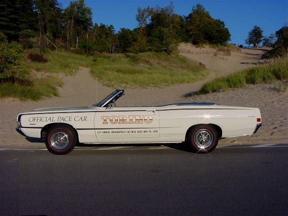 8-31-2005 - "Mike, My 1968 Torino Pace Car is finally completed. I was able to find a set of Kelsey Hayes Magstars to make it 100% correct. My biggest problem now is getting that first blemish! Take care,