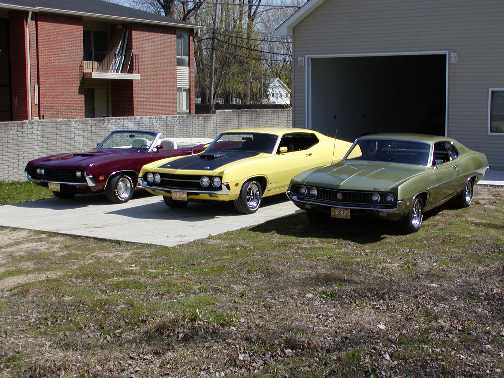 The following comes from my friend Chris Jones of Ferndale, Michigan. Chris writes "Mike, Kim and I will be at the Bash at the Beach 2003. We will be there with our 3 Torinos. Maybe by buddy Mike, with the 1969 Mustang Mach I and the one that I went racing with, will drive my green 2 door hardtop over for us. Here is the pic.