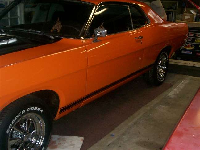 The following comes from Christian Sherman of W. Bridgewater, MA. Christian writes "She is a 68 with a 302 and a C4 transmision. No power steering or brakes (stock) The rims are 68 SEMA mallory 15 x7.5 that came with the car when I got it. The car was banged up bad but with some time and the scoring of a second car from N.H. (the old grannie mobile.) she is now running great. On Monday I put a black GT stripe kit on it, the one that runs just along the rocker pannel. Thanks to you and all those out there restoring these great cars,especially the web site i was able to get the project off the ground thanks again Christian Sherman, W. Bridgewater, MA"