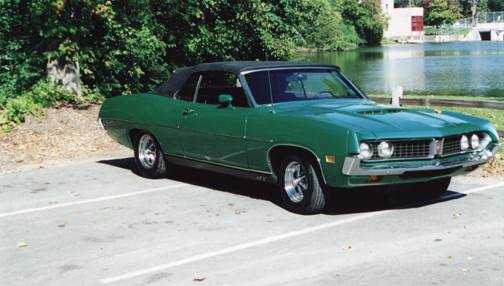 The convertible was bought in 1998 from the 63 year old nephew of the original owner. The original owner was the proverbial little old lady who only drove it to the Gross Point Yatch club on sunny summer days. The car only had 12,600 miles on it when I bought it and still had the original plug wires and heater hoses; and the original drum brake retaining clips were still on the car. It is a 351C 2V car with an automatic transmission and black bench seat interior. It doesn't have many options, but the low mileage history is what makes it unique. I had it stripped to bare metal before repainting it the original Grabber Green color, and then added Magnum 500 wheels.