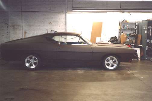 Enough of that, lets get to the good stuff. I replaced the original 302 with a 351 Windsor stroked out to 410 cubic inches, with all the goods to make the power. It has a warmed up C6 with a 10 inch TC:3000 convertor. Just installed a 9" rear end with a nodular center section from Mosor Engine, with 4.30 gears and a Detroit Locker and new axles from Moser and Southside bars. Stopping the Torino is a 4 wheel disc brake set up with Wilwood discs in the back and John Mustangs set up front. I wanted something different for the wheel choice so I got 17" Torque Thrust II's with 205/50/17 in front and 255/50/70 on rear with Bridgestone RE730's. Also been replaced is the front and rear suspension. Only thing is left is the interior and going to buy the interior package from Dearborn Classics. THE NAME OF THE BODY SHOP WHO IS DO THE THE WORK IS CHUCKS BODY SHOP OUT OF FAIRBORN OHIO! I'll send you a later picture when the Torino is all done. Thanks for the great site. If anybody has any question about the wheel sizes or anything else, email me at torinodw@aol.com Thanks Doug Wood, Dayton Ohio"
