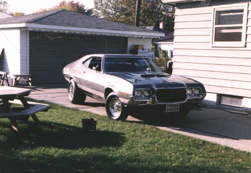 The following are pictures of my friend Harry Brown's 72 Torino. Harry brought the pictures over and I scanned them. He was suppose to send me an email with the usual description and stuff but has NEGLECTED TO DO SO! So I have taken it upon myself to post them anyways. Harry has owned this car since high school (he's 40). It is a 351CJ, 4 speed. He even painted it himself. Does all his own engine work, and is a very good head man. As a matter of fact Harry is the guy who is going to detail my engine compartment. Now Harry if you don't like my description, SEND ME YOURS LIKE YOU WERE SUPPOSE TO!!