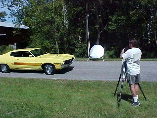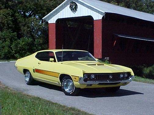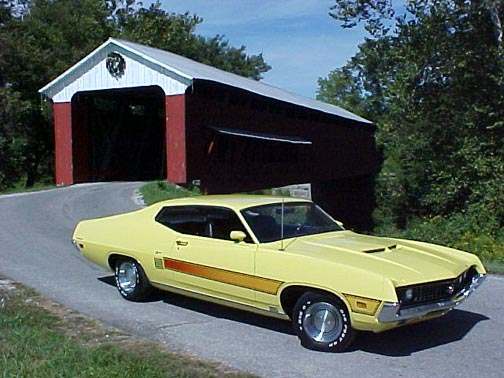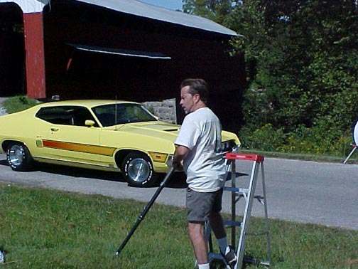 Jack Selig's Torino was chosen for a calendar photo shoot! Jack writes "Mike, My Torino was selected to be put in a muscle car calendar! The photos have already been taken and I will receive 2 dozen calendars. When i get them I will send you one . The day the calendar shoot was done in Scipio, Indiana. The photographers name was Roy Query of indianapolis and all he has done in the last 20 years is take pictures of cars all over the world and he has some interesting equipment. He has a platform on the top of his van for those special shots and says it usually takes about an hour to find the right spot for a photo shoot but in my case I found him one real quick. It was a fun day and all the people driving down the road were very nice to drive thru the grass around the car because he had small blocks under the wheels to level the car and the reflectors had to be set just right. He took about 50 pictures it was a day i wont soon forget thanks Mike.