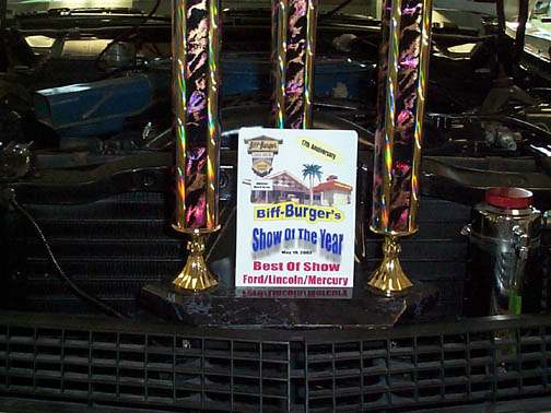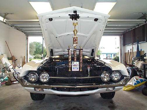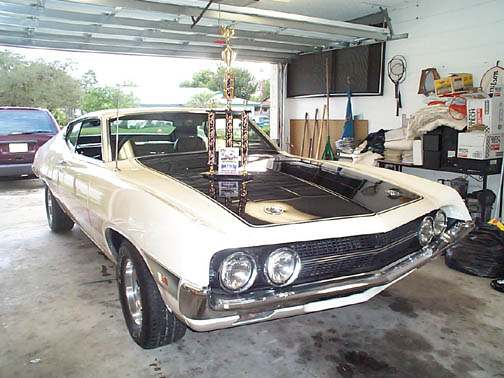 Mopre from Jason Jamieson of Clearwater, Florida. Jason writes "Mike, Jason from Clearwater, FL . I went to a car show today at a local restaurant that has a show every Friday and today was a make up from May 19 . It's their anniversary show and this was number 17. There were a lot of nice cars at the show, about 150 or so. I didn't think the car would be ready because I took the hood off Monday and spent 11 hours sanding the inside of the hood by hand on my lunch break and another 5 getting the outside ready for new black paint. I got PPG single stage and didn't know how well the white would match the existing paint so I didn't paint the outside white only the black. I painted the underside Thursday and the black Friday and put the hood on and adjusted it yesterday. The black was supposed to be a matte finish but ended up being very glossy. I didn't even have time to wet sand or buff the hood. Anyway, back to the show. I won Best of Show in the Ford/Lincoln/Mercury class. It was a total surprise because there were so many beautiful cars there today. I also meant two guys that just bought Torinos, one had a '72 fastback and the other a '71 sportroof with a 428 in it, they weren't actually in the show. I attached some pictures. Sorry I haven't been in the chat on Thursdays lately, been working. Have a good one."