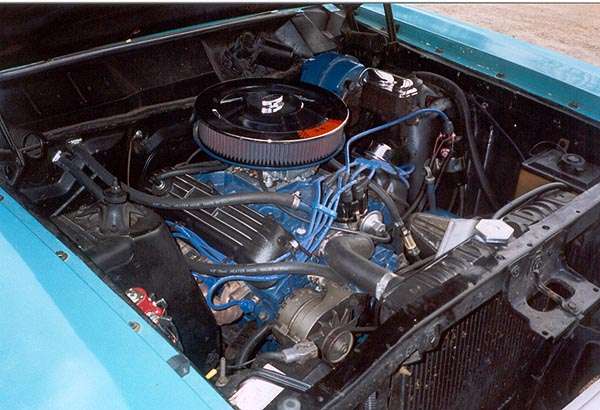 Hey Mike, got a couple pics of the new motor for ya. Heres details on it. 850 miles on a fresh 351W bored .030 over, crank turned .010", flat top pistons, mild cam, 3 angle valve job with hardened exhaust seats, Pertronix ignitor and coil, Taylor Spiral Pro wires, Carter Street fuel pump, Holley 600 carb, factory Ford aluminum valve covers from an 82-85 Mustang GT, ARP Black oxide engine bolt kit. And oh, Assembled by ME! Later! Mike