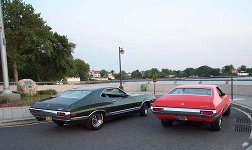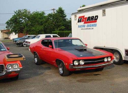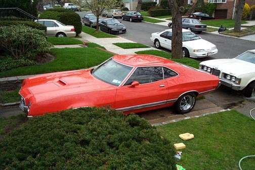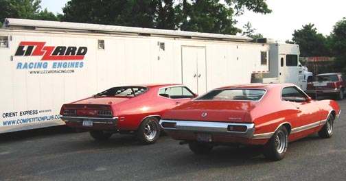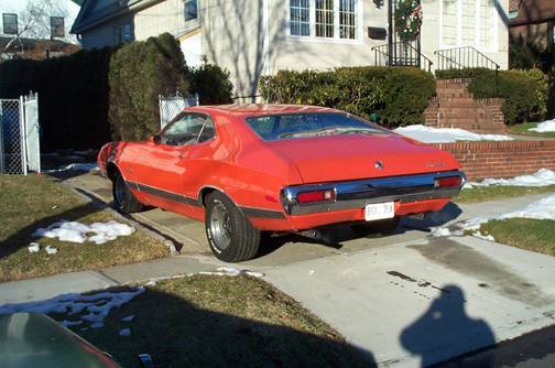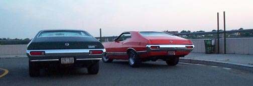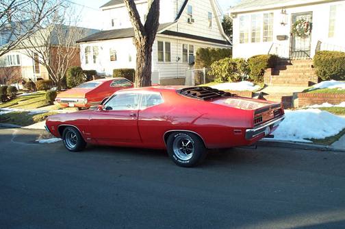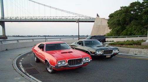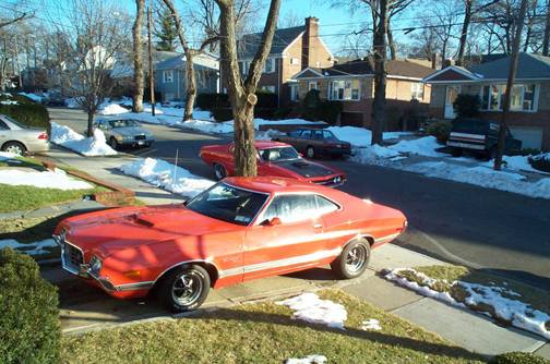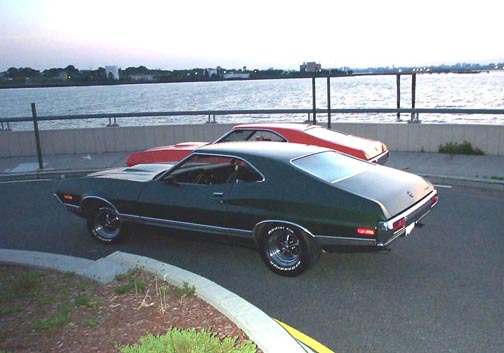 I received more photos from Michael Curry of New York. Michael writes "Had my 72 Torino out to stretch her legs...and new shots of the 70 with the new Skins and took these photo's of the 72 and 70 together (they finally met today) took the 72 for a roadtrip to a superbowl party in Jersey, it felt real good to have her out, she had been 'sleeping' too long since thanksgiving... Hope you guys enjoy the pics. The new addition to the fleet is a 1970 J Code Cobra 4spd w/ the drag pack, staggered shocks 4:30 locker rear etc...bought it on ebay of all places...She looks all there has a monster cam in it, just need to fix a rear main leak (ouch) and heater core and blower motor...