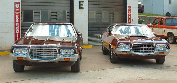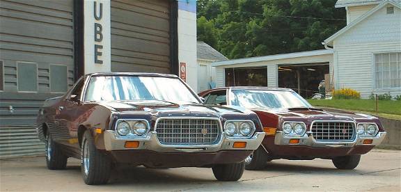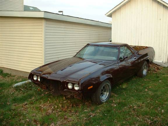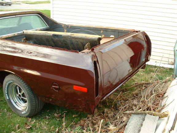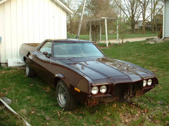 Well, got the ranchero home today. turns out i was scheduled o work till 7pm ALL this week, so i wasn't going to have a chance to get it plated and insured so i had it hauled home by the same guy that hauled the 76 home. at least i can start putting it back together. picked out the best pair of used headlight bezels I had, cleaned then up and put them on. also put the ford letters across the header panel on. gotta finish up on the grill and get that in so i can put the bumper and valance back on. looks decent, although there are some fish eyes here or there. very few though. it IS darker but still will be close enough.