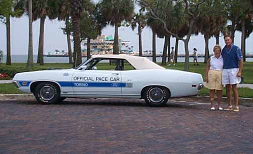 Preamble by Robert Day...."Thought you would want to see these. A restored 70 Torino GT Convert- one of the few that were factory supplied to NASCAR as pace cars. All were sequentially built, pastel blue J code/C6/PS/PB well optioned with a few odd ball items like power bench seat and mag style wheel covers instead of Magnums. Around 9-12 were built, plus a few fastbacks. Feel free to add them to your site!"