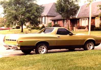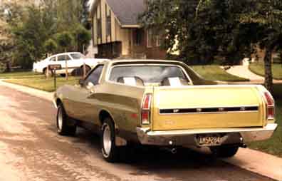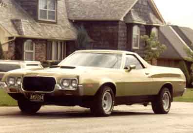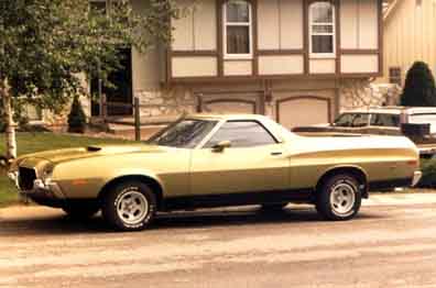 The following comes from Paul Nolan from Blue Springs, MO. He writes "Thanks for the opportunity to post my pictures, as you know Eric and I are best friends and we were both loyal Torino owners. My car however didn't last as long as Eric's. I purchased my 1972 Ranchero 500 in 1979 for $1400.00 with only 69,000 miles on it. It had a 351C 2bbl and FMX Transmission. I drove it for about 10 years and 175,000 miles through high school and college. Through the years I added Gran Torino Sport door panels, Leather seats, center console and floor shifter from a 69 Cougar XR7. That was an interesting job to get those parts to fit. I added the deep dish American Racing wheels, 60 series radials, blacked out grill, dual exhaust, tinted windows, mud flaps, pioneer stereo with 6x9 speakers that I built into the storage area behind the seat and under the bed. For its day it sounded great. An interesting note the factory hood with built in hood scoops didn't come with the Ranchero when I bought it. A friend of mine found it in a junk yard and I bought it for $20. The color matched so well that I didn't even have to paint it. I took an idea from the Subaru Brat and added folding bass boat seats in the rear, complete with seat belts. It was a great vehicle and sometimes I miss the uniqueness of it. Even in its day there weren't a lot of them on the road and today you don't see any. It would be great to have another for a collectors item. Thanks for the memories, Paul". Paul it's my pleasure. Great car by the way!