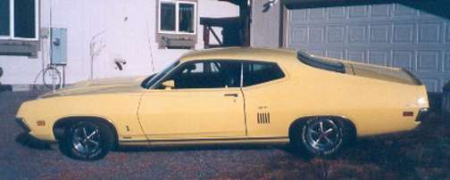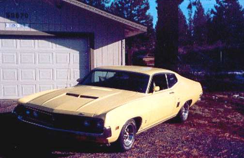 The Following come from Rick Herget (Rch49_2000) of the Yahoo Torino Club, in Oregon. Rick writes "Mike, The 1970 Torino GT had 103,000 when I bought. At the time I bought it I could only find 2 in the state of Oregon that I was interested in. The owner told me it was all original and in excellent shape. It took several months for me to get the car, so by the time I went to pick it up I was not in a clear frame of mind. I was going to come home with the car no matter what. Well I paid my money and took my chances. I jumped in and gassed it up to make the 130 mile trip home. The power windows quit working in about 20 min. Naturally they quit in the down position. I froze the top half of my body but the FORD heater took care of the bottom half. I made it safely home. The next day the p.s. pump puked. I checked the brakes and the looked like the alps. Both rotors and drums were scraped metal. The 3.25 Trac lok. turned out to be a 3.00 open. In the light of day I could see where the left rear quarter panel had been replaced and not a very good job at that. But from the pictures you can see that it looks really good from a distance. I replaced the power windows with standard regulators. I am in the middle of replacing all the weather stripping. New door panels are in the garage waiting to be installed. The 351C has a Offenhauser 360 manifold, MSD billet dist. and the Road Demon 625 carb. I have plans to stroke the 351C to 393 back it with a Lentech AOD and put a Rod & Custom Coil Over & Rack and pinion steering in it. I want it to look stock from a distance and to the novice.