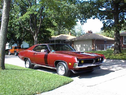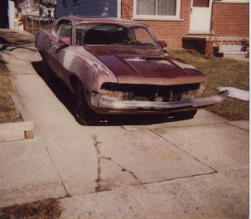 I received this email from Steve Randazzo of Dearborn Michigan, my neck of the woods. Steve writes "Hello from Dearborn Mi. Here is a Picture of my 1971 Torino 500 - Purchased for $1000 in June 1998 found in Marine City Michigan under a Big Oak Tree! The first 2 Pictures show the shape of the car during the restoration 2 years ago. The third shows the Flinstone Version of this car (The Floor) Through this whole ordeal the Floor Boards from the Firewall Back has Brand New Sheet Metal and Carpeting. The Car has been Modified to a street Machine over the last 2 years. Original Engine was 302 with a C4 trans. In early 1999 I purchased a 1969 429 Thunderjet Engine and then decided to add my own personality to this Classic. As of June 2000 The Torino 500 now Houses a 429 CI - With a C6 Automatic Trans - Headers - B&M Mega Ratchet Shifter - Mickey Thompson Cheater slicks - W/Centerline Rims (Rear Only) and Front and Rear Spoilers amoung other items. And I must say ... If it wasnt for the understanding of my wife this dream would not have been possible! especially with countless hours of work and living in the garage for 2 years! Hope you enjoy looking at this as much as i do driving it. And a bit of advice for all those that wnat to go from a Small Block to a Big Block $$$ + Time + Patience + Money = Reward feel free to email any questions Thanks - Steve Randazzo srandazzo@mediaone.net"