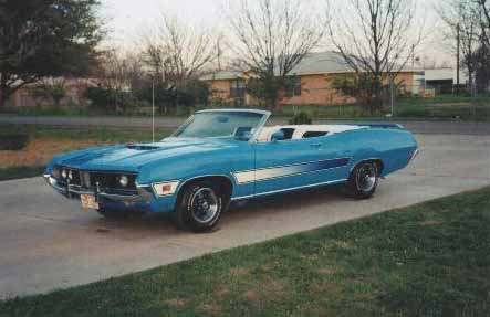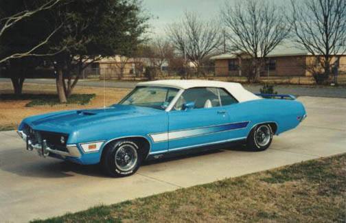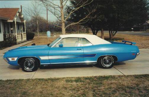 I received the following from Stuart Sussdorf of San Angelo, Texas. Stuart writes "Mike, What an awesome website! Thanks for giving car nuts like me a place to zone out for awhile. I have sent you a couple of pics of my 71 Grabber Blue drop top (I will send you one later with the top down when I get my boot to fit properly). Some stats: 351 Cleveland 4bbl, C6, 2.75 Diff, buckets, consol, rim blow wheel, AM-FM stereo, mild custom W/ 70 model mustang spoiler, 6-disc cd changer mounted in trunk, Front Grill Gt emblem and center caps of mag wheelcovers are painted blue instead of the factory red. I also have another 71 GT drop top with hideaways that I will keep for parts as long as I own the other. It could be restored but I just spent 3yrs on the first one. Thanks again, Stuart Sussdorf San Angelo,Tx"
