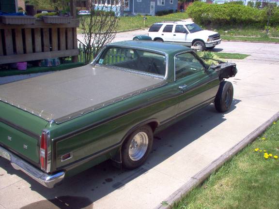 "This is my 70 ranchero. I'm currently in the process of redoing it. Its a 1970 ranchero squire, with a 351 cleveland. added a edelbrock intake with a 650 carb. The wood grain was removed and turned into a two tone truck. Most of the parts on it are original, the bed cover... to the headlights. I hope to get it on the road this year. I'll send pics when its done. thanks for the great site.