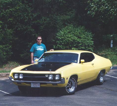 The following comes from Tim Flynn of Danvers MA. Tim writes " Mike, the car has 7in. rims. she is an n-code 429 c-6 on the column. bench, this car has to be rare, 3.25 gears, no posi! this pic was the cover pic for a local car magazine. I was thrilled to have my car featured in a mag. I added the rims, the louvers, the sport mirrors, the shaker. this car was bare in options. 60k orig. mi. I recently got a hold of the last true owner, he tried to buy the car for a long time. It sat in someone's yard. It was all black. Yellow originally, he believes she was used to run moonshine. He hasn't even seen the car yellow. Now that i figured out how to get the pic out i can show him. When you get more info on the new diecast Torinos please let me know. thanks a lot! P.S. I can't wait to see my car on your site!!"