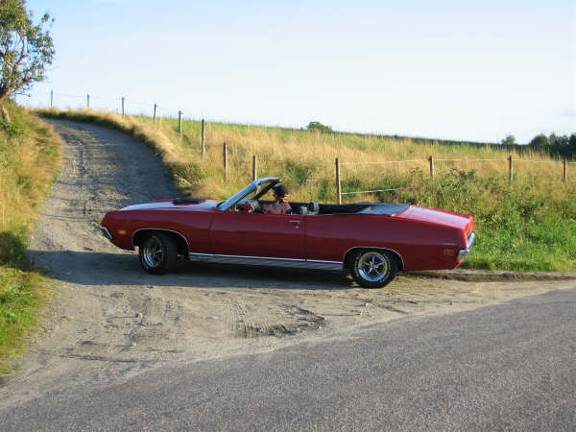 "This is my -71 Torino GT convertible. The car is actually a result of me advertising for a 1971 Torino convertible to buy - right at this web-site - in the classifieds section about two years ago. I was determined that I wanted specifically a -71 convertible, and nothing else. And I found the right car for me (I bought the car from a very nice guy in Detroit)! The car has a rebuilt 429 Thunderjet and a 4-speed trans, a brand new Centerforce clutch, power steering, power (disc) brakes and a shaker scoop. Actually I'm not so delighted about the shaker, and I have plans of removing it in the future. I understand that most people prefer the shaker(hood), but I actually like the GT-hood better! So further on this car will have a new paint with the GT-hood, rechromed bumpers etc. I have plans of installing a hideaway-grill also. Most likely I will add a set of laser stripes with the new paint too. But all this is plans for the future, and the car is perfect to enjoy as it is now. I really love to take the car to car-shows here in Sweden in the summer. The Torino convertible 1971 is a very rare car in Sweden, and I have never seen another -71 convertible at any of the car shows I have attended. I know that some do exist, but they doesn't show up; instead all these -70 convertibles (there's a bunch of them) and fastbacks come to the car-shows... And all other kinds of classics of course. Vintage american cars is such a big nationwide hobby here in Sweden and we are blessed with thousands and thousands of beautiful cars to enjoy - including many Torino's!