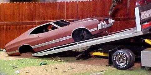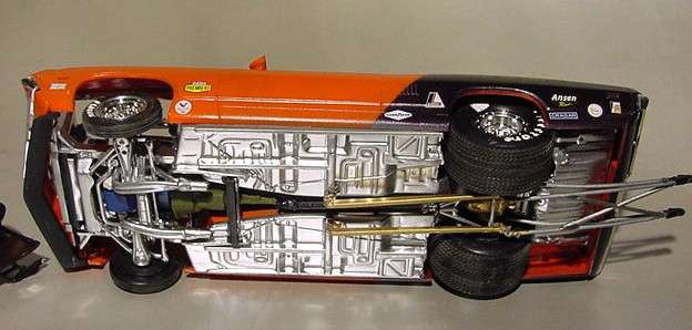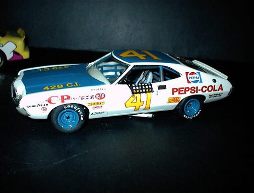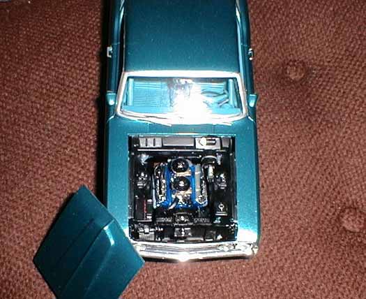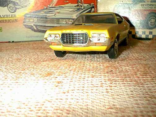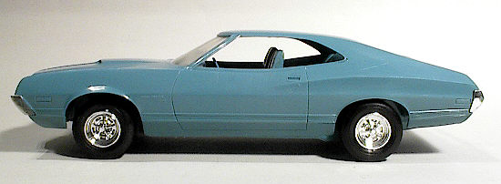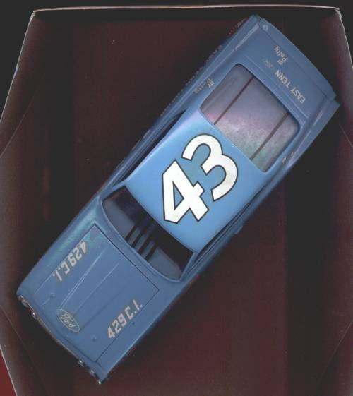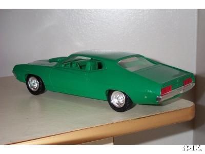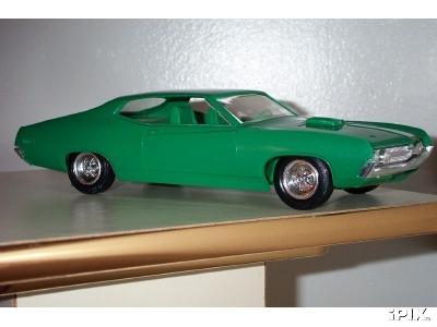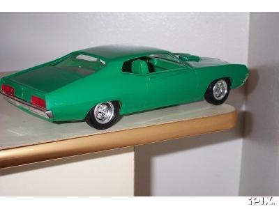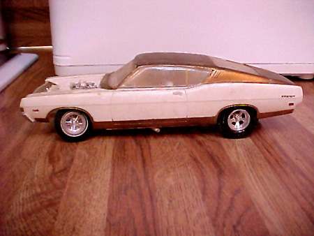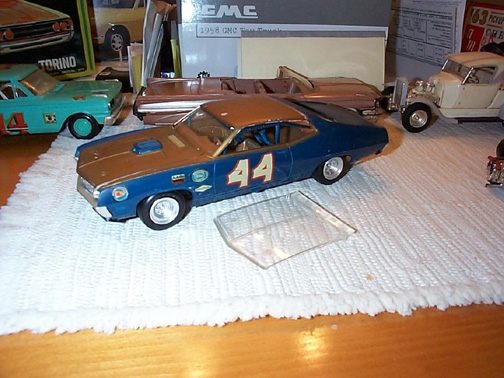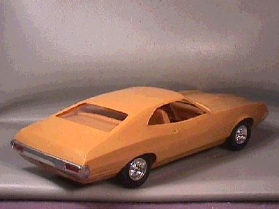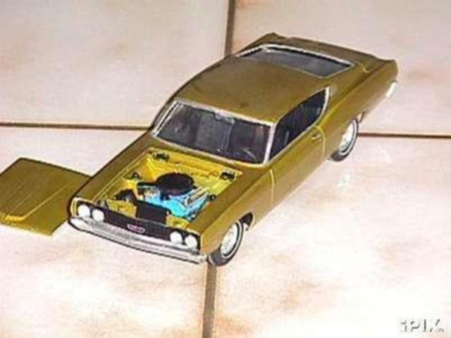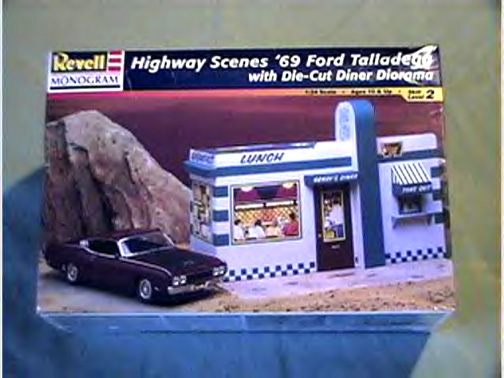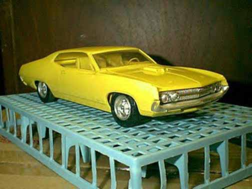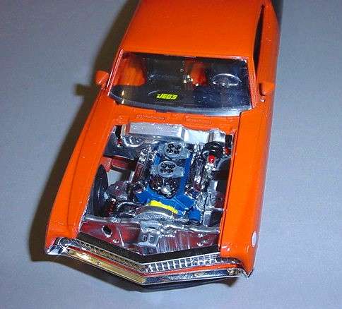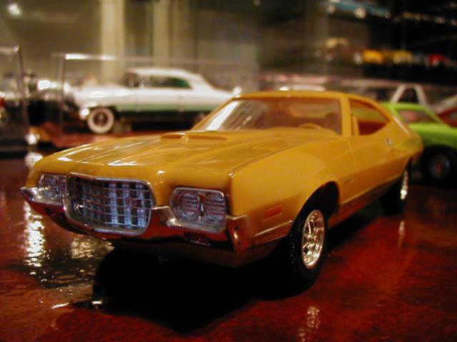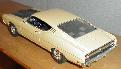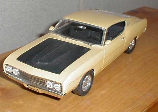 More from my buddy Chuck (Torino692 of the Yahoo Torino club). Here is a Revell Monogram Talladega model that I bought from a guy for $15.00 It was supposed to be Maroon, but was painted a Light Yellow by the previous owner instead. The hood is not painted black all the way to the cowl, & it is missing a few engine parts but I will find another model like it someday and get those parts that I need. It has pretty nice detail! These pictures don't really do it justice. This is not the actual box, but its just like the one that it came with the Talladega.
