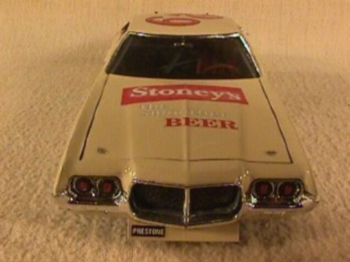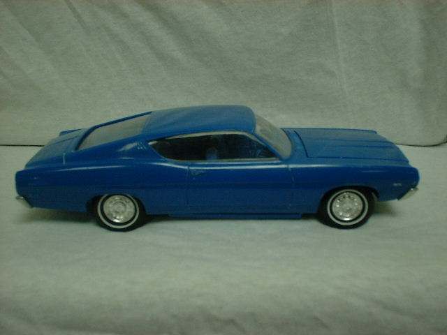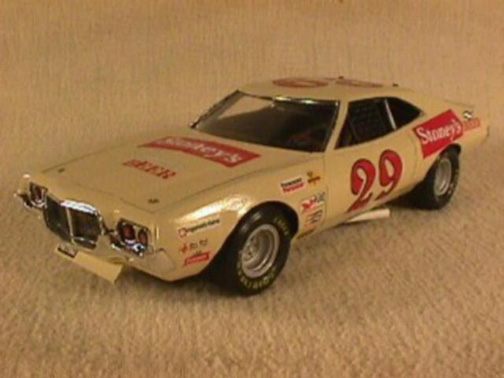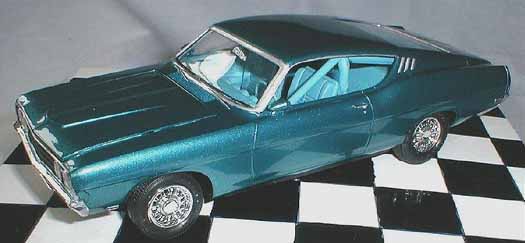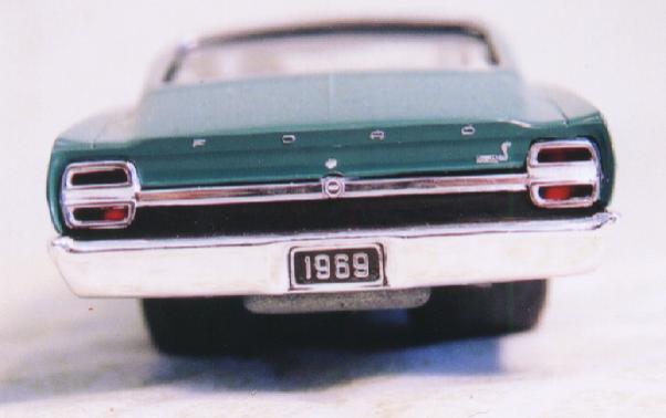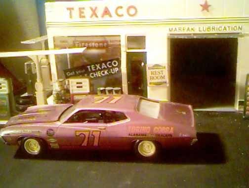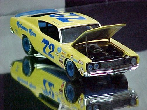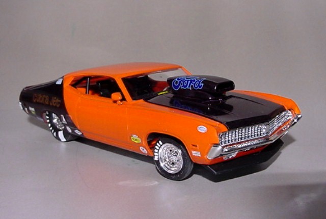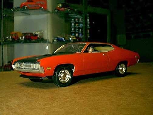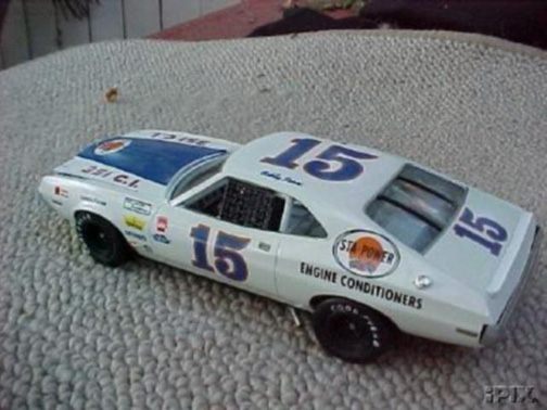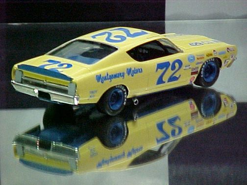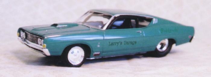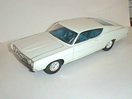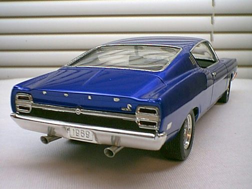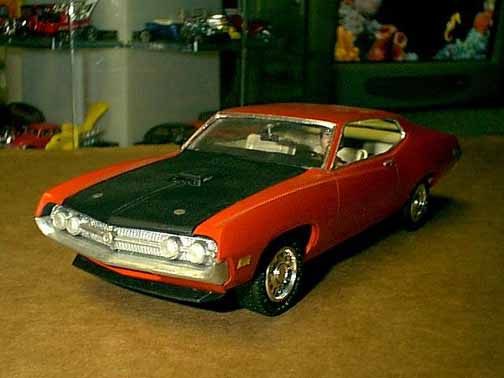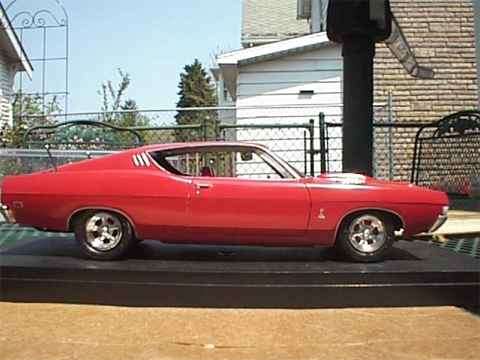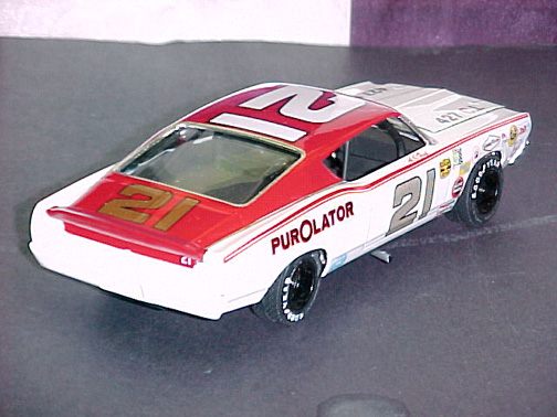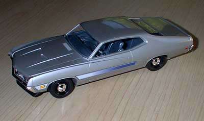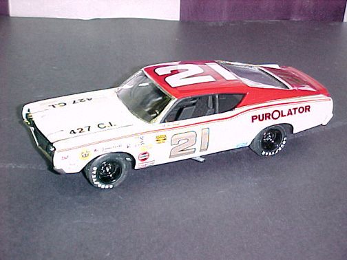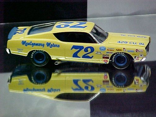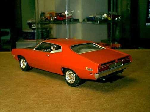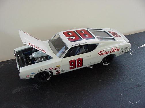 These came from my buddy Chuck (Torino692 of the Yahoo Torino club). Chuck is always sending good stuff! "Mike, This is one of my Torino models. It came from Blue Ribbon Nascars. HERE IS A AMT/ERTL BUILT BY NASCAR MODEL BUILDER *LARRY MEYER* A WELL KNOWN NAME FOR CLEAN, SHARP DETAIL. THIS 1/25TH SCALE TORINO IS THE 1968-69 TORINO LEEROY YARBROUGH DROVE, BACK IN THE GOOD OLD DAY'S. LARRY BUILT THIS CAR ALL BOX STOCK, OTHER THEN THE HOOD PIN SET ON THE HOOD, THE WINDOW NET, THAT'S NOT SEEN IN THE PHOTO'S, & THE HOOD PINS, THAT HANG OVER THE HEAD LIGHT'S, WITH A PHOTO-ETCHED SCREEN VENT IN ONE OF THE HEAD LIGHTS. IT'S HARD TO SEE THE HOOD PINS HANGING OVER THE LIGHT'S, BUT THEY ARE THERE. HE ALSO ADDED *ROSS GIBSON* HEADER'S, & MADE THE ALUMINUM EXHAUST PIPES, CAUSE HE DIDN'T LIKE THE ONE'S IN THE KIT. HE ALSO USED THE 6 LUG WHEEL'S FROM PERFORMANCE PRODUCTS, & TREADED TIRE'S MAKING THE CAR AS CLOSE TO 1968 HE COULD. THE PHOTO'S REALLY DON'T SHOW HOW CLEAN & SHARP LOOKING THE CAR REALLY IS." |